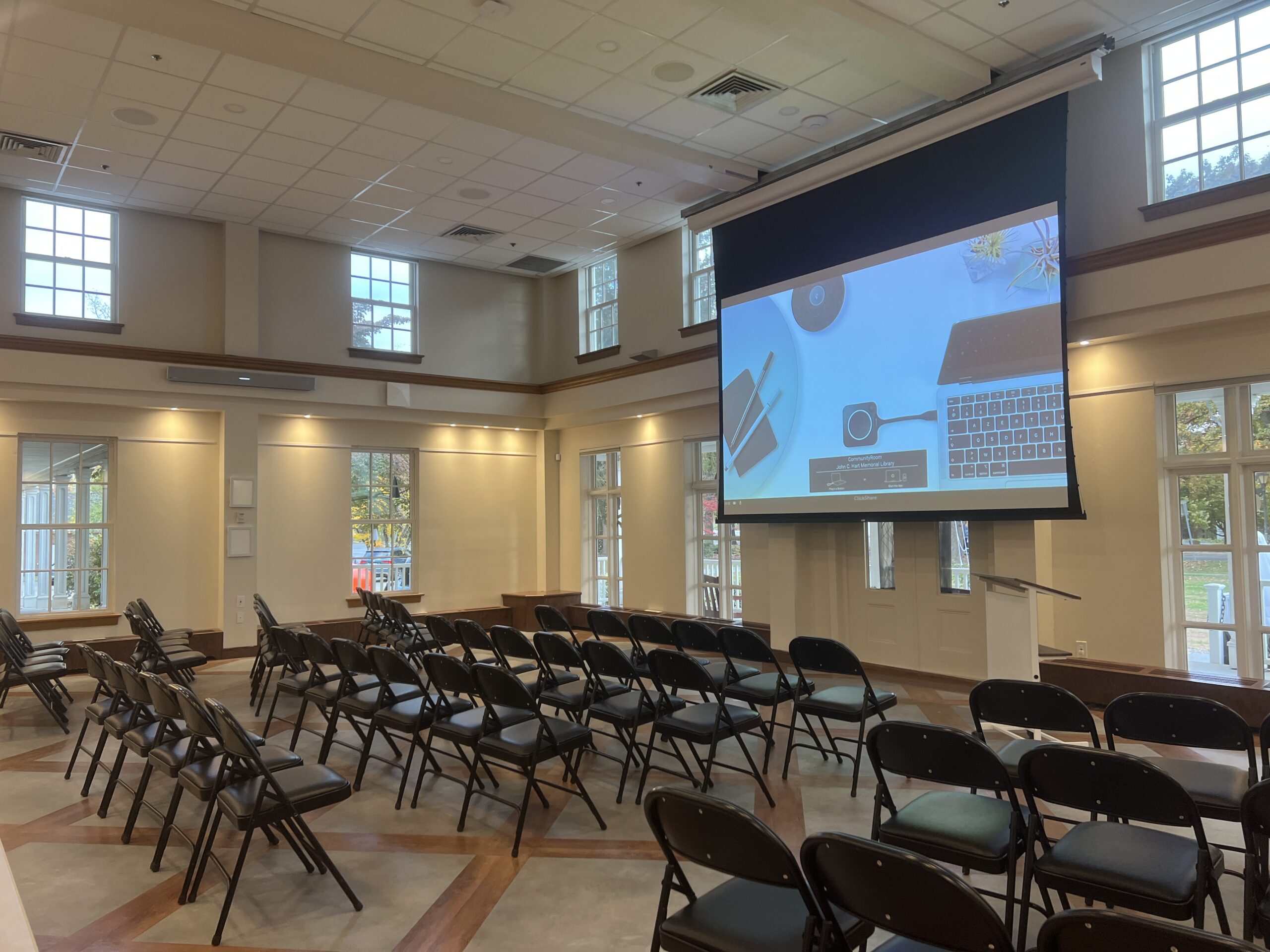 Shadowbox Design Management partnered with Yorktown Library to modernize and enhance the Betsy Cobb Stewart Community Room with a comprehensive audio-visual system upgrade. The goal of the project was to improve the functionality, clarity, and versatility of the room for community events, presentations, and meetings.